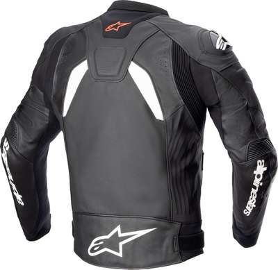 GP Plus v4 Leather JacketRace-derived sport leather jacket with a revised silhouette has a modernized look and refined detailing. Three main differences in the GP Plus R v4 are: A-CS™ Plus stretch material, GP-R Lite extended elbow armor, and new modernized graphic A-CS™ Plus stretch material is Alpinestars composite stretch found in the large side panels of the jacket A-CS™ Plus - MotoGP derived material technology - provides increased stretch, high abrasion resistance, higher tear resistance than leather, plus lower profile and overall weight Completing the chassis construction is a mix of race and regular bovine leather Dynamic Friction Shield (DFS) external shoulder sliders with Nucleon Flex Plus armor underneath provides impact protection and movement comfort Detachable 80g thermal vest and long airflow vents on the abdomen Tech-Air® ready EN17092-3:2020 – AA Class Elbow & shoulder protection EN 1621-1:2012 Level 1 36% Cow Leather, 36% Polyamide, 25% Buffalo Leather & 3% Elasthane. Inner/lining: 89% Polyester, 9% Polyamide & 2% Elasthane