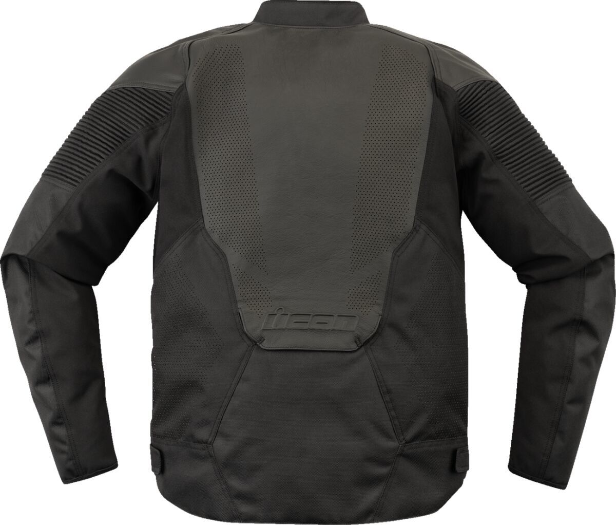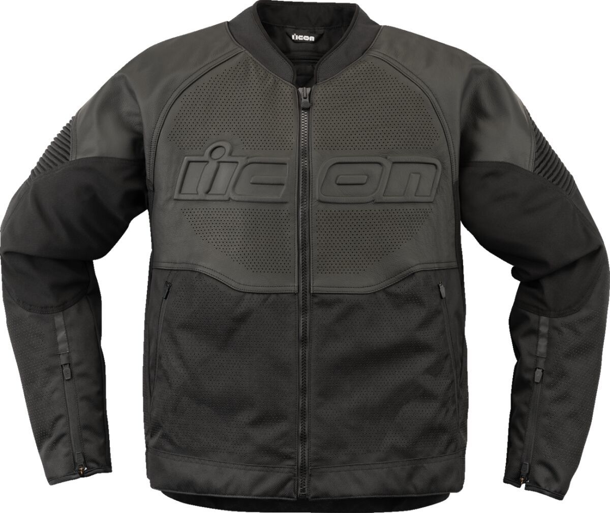 Overlord3™ Leather JacketJacket comes with D3O® T5 Evo impact protectors in the elbows and shoulders plus a D3O® Viper back protector Impact protectors are low-profile and removable Trackspec Leather and 300D Polyester chassis with internal 300D polyester reinforcements Laser perforated areas cover large sections of the front, back and arms of jacket Icon® Sport Fit has pre-curved arms and waist adjusters Removeable insulated vest liner Back protector EN 1621-2 Level 1 AirFly™ stowable mesh panel up front for maximum airflow Jacket Shell: 75% Polyester, 23% Cow Leather & 2% Polyurethane. Inner/lining: 100% Polyester. Liner Body: 100% Polyester. Fill: 100% Polyethylene Fiber