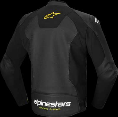 Faster v3 Airflow Leather JacketCombines leading protective performance features and rider comfort Key Features: Highly durable and technical leather, with multi-panel construction for strength, comfort, and abrasion resistance Extensive advanced Hyper Resistant Stretch Fiber (HRSF) stretch inserts on chest, back, abdomen, underarms, shoulder blades, and inner arms for optimal performance and freedom of movement Pre-curved arms and ergonomic elbows for premium rider comfort and fit Zippered opening vents on side torso for added ventilation Hook waist volume adjustment for an optimized fit Ergonomic die-cut collar construction with synthetic suede inner collar for comfort Protection features: Tech-Air® 5 and Tech-Air® 3 ready Integrated DFS GP Lite protectors on the shoulders for superior friction control Nucleon Flex Plus shoulder protectors for protection against impacts GP Lite elbow armor for protection in key area Tech Specs: Fixed mesh liner for enhanced rider comfort with internal pockets for a divided chest protector and a back protector pocket, both available as accessory upgrades Built-in welded front flap closure at the top of the jacket and on the wrists for a secure, customized fit Waterproof inner compartment Large zippered front pockets for secure storage Waist connection zipper allows for secure attachment to Alpinestars riding pants Rear of the jacket is elongated for coverage and comfort while in the riding position EN 17092-4:2020 - A Class Elbow & shoulder protection EN 1621-1:2012 Level 1 54% Buffalo Leather, 43% Polyamide & 3% Elasthane. Inner/lining: 95% Polyester & 5% Polyamide