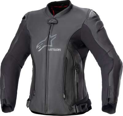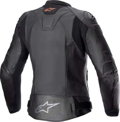 Women's Stella GP Plus R v4 JacketRace-derived sport leather jacket, revolution of existing model. Revised silhouette engineered for a tailored women’s fit. Improved material selection with lighter weight. Modernized look with refined detailing. Race-derived A-CS™ Plus stretch paneling provides increased flexibility and improved freedom of movement. A-CS™ Plus provides high levels of abrasion and tear resistance, as well as high breathability, as well as a lower weight and profile than leather accordion paneling. DFS shoulder kit with Nucleon Flex Plus shoulder armor provides impact protection and movement comfort. GP-R Lite extended elbow armor and pre-curved race fit provide impact protection and natural pre-curved riding position comfort. Detachable thermal vest 80g and long direct opening vents for climate management. EN17092-3:2020 – AA Class Elbow & shoulder protection EN 1621-1:2012 Level 1 43% Polyamide, 32% Cow Leather, 22% Buffalo Leather & 3% Elasthane. Inner/lining: 89% Polyester, 9% Polyamide & 2% Elasthane