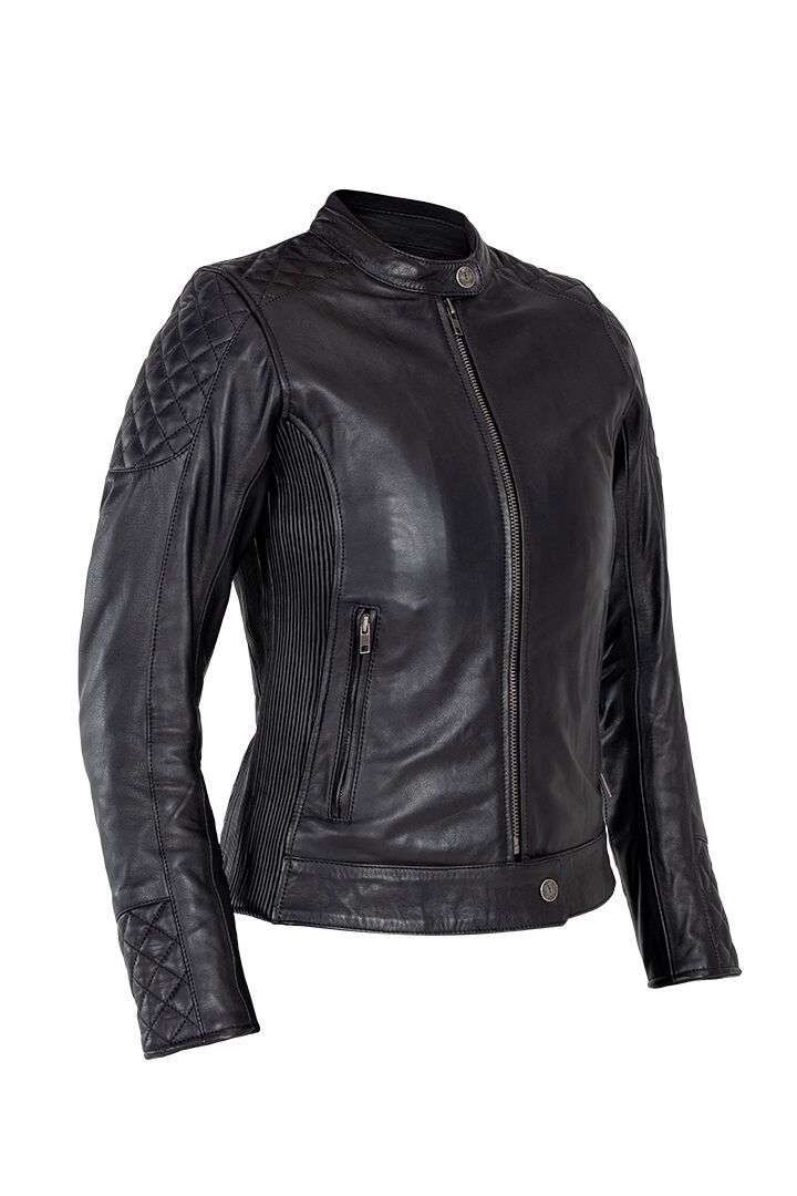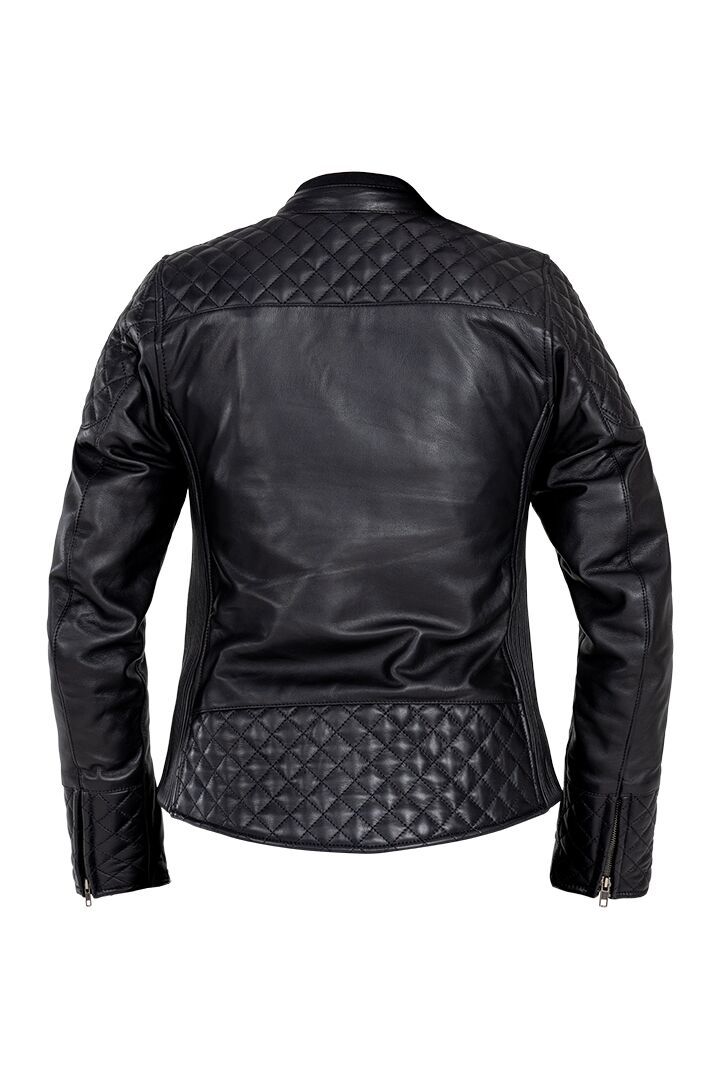 Women's Adina Leather JacketThe John Doe Adina leather jacket is a masterpiece of style, comfort and safety on the motorcycle. With its tailored fit and stretch panels that cinch the sides of the jacket, this jacket offers unparalleled comfort. The classic diamond stitching, which extends from the shoulders to the upper back, emphasizes the timeless look and quality of this leather jacket. Each stitch is precisely placed to ensure perfect symmetry and a luxurious feel that characterizes the John Doe Adina leather jacket. Discover the John Doe Adina leather jacket today and experience the perfect combination of elegance and functionality for your motorized adventures. Water and wind block function. Preformed long sleeves with adjustable width. Inside pocket on the left. YKK zipper/semi-automatic YKK zipper. Protection classification AA. XTM® Protector-ready (multi-position system). Integrated shoulder, elbow and back protector pockets. Level 1 shoulder and elbow protectors included, upgradeable to Level 2 (part number: 27040752, sold separately). Optional back protector Level 1 (part number: 27020317) and Level 2 (part number: 27020318)(both sold separately). Shell 1:100% Cowhide leather. Shell 2: 100% Polyester. EN17092-3:2020 – AA Class