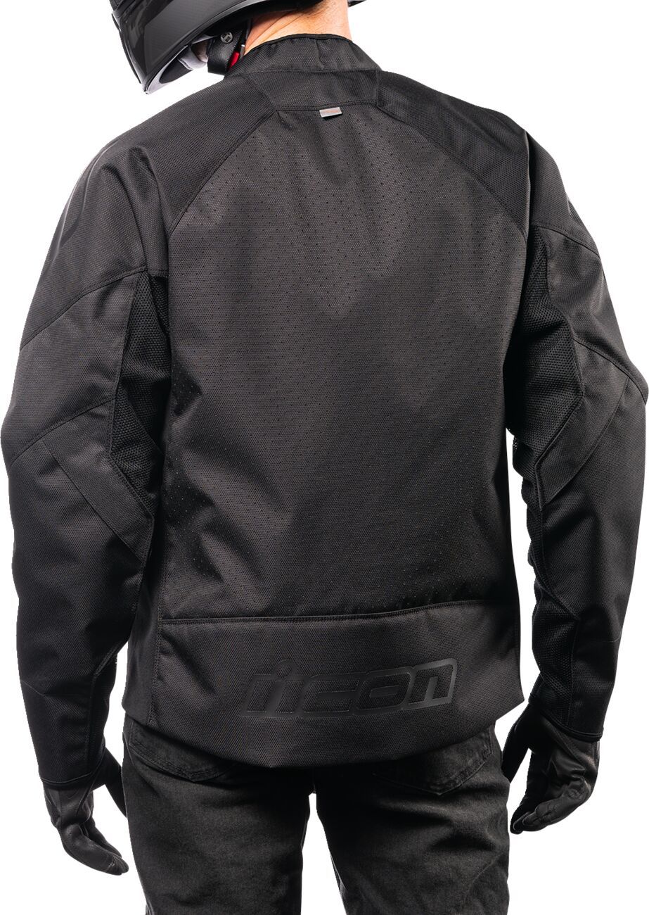Hooligan™ JacketDurable 300D polyester chassis with internal reinforcements ICON® sport fit Mesh ventilation panels Designed for comfort in an aggressive riding stance with pre-curved arms and waist adjusters YKK® Zippers Back protector EN 1621-2 Level 1 D3O® Impact protectors in the shoulder, elbow, and back Iron Weave™ mesh panels provide airflow for hot weather riding EN 17092-4:2020 – A Class