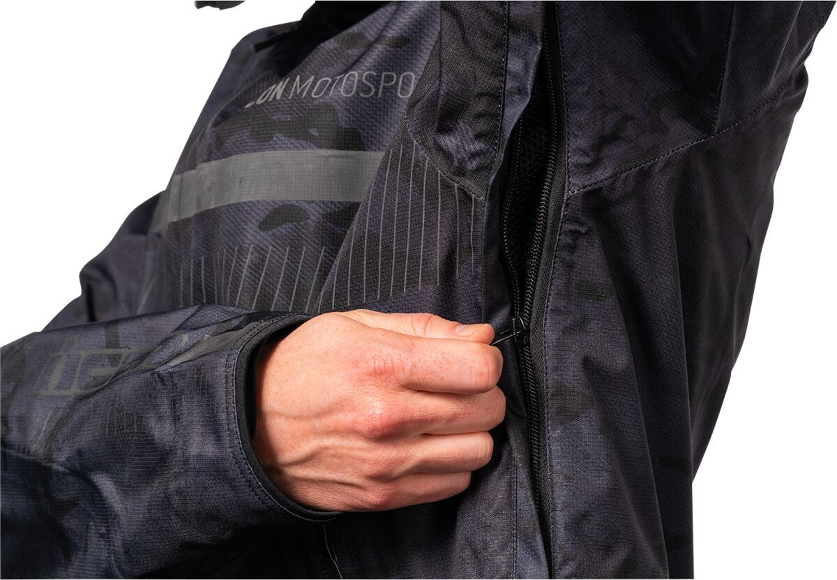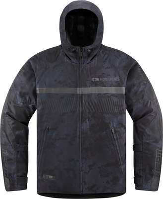 PDX3™ JacketRemovable insulated vest liner Internal 300D polyester reinforcements Hycor™ waterproof/breathable chassis Oversized pit vents ICON® relaxed fit Roll and stow hood Back protector EN 1621-2 Level 1 Premium D3O® impact protectors in the elbows, shoulders, and back Reflective graphics