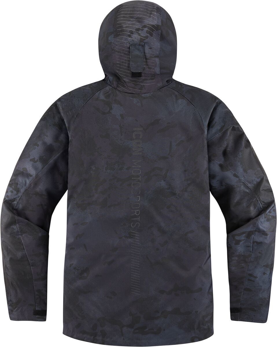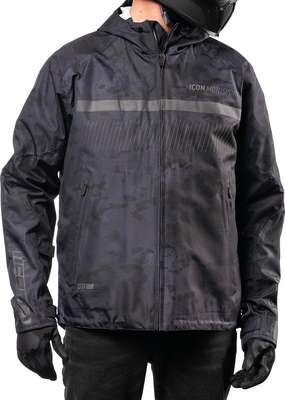 PDX3™ JacketRemovable insulated vest liner Internal 300D polyester reinforcements Hycor™ waterproof/breathable chassis Oversized pit vents ICON® relaxed fit Roll and stow hood Back protector EN 1621-2 Level 1 Premium D3O® impact protectors in the elbows, shoulders, and back Reflective graphics
