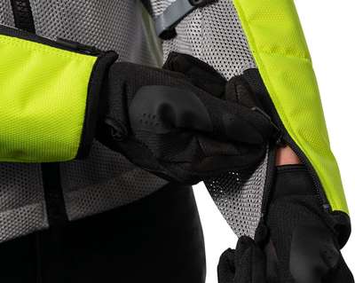 Mesh AF™ JacketDurable 300D polyester chassis with Iron Weave™ Mesh for superior airflow Adjustable waist and arm strap ICON® sport fit YKK® zippers Equipped with a full suite of D3O® Impact Protectors covering shoulders, elbows, and back Back protector EN 1621-2 Level 1 EN 17092-4:2020 – A Class Reflective trim