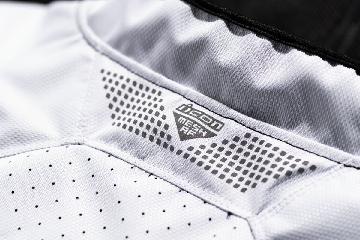 Mesh AF™ JacketDurable 300D polyester chassis with Iron Weave™ Mesh for superior airflow Adjustable waist and arm strap ICON® sport fit YKK® zippers Equipped with a full suite of D3O® Impact Protectors covering shoulders, elbows, and back Back protector EN 1621-2 Level 1 EN 17092-4:2020 – A Class Reflective trim