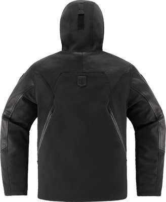 Basehawk2™ JacketIcon® Sport fit with straight body and articulated arms 1.2 mm - 1.4 mm Leather and durable softshell chassis with internal reinforcements Removable D30® Viper back impact protector Handy roll-and-stow hood Premium YKK® zippers Removable D30® Ghost elbow and shoulder impact protectors Maximum ventilation with AirFly™ center front stowable mesh panel and chest/back zippered vents Waist adjuster draw cord for a better fit Reflective accents for improved visibility Back protector EN 1621-2 Level 1 Shell: 78% Polyester, 15% Cow Leather, 4% Polyurethane & 3% Elasthane. Inner/Inner/linning: 100% Polyester
