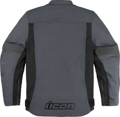 Slabtown™ JacketIncreased airflow through AirFly™ center front mesh panel, and zippered vents at the shoulders, cuffs, and back Removable insulated vest liner Designed for comfort in an aggressive riding stance with pre-curved arms and waist adjusters Back protector EN 1621-2 Level 1 450D nylon stretch chassis with 300D polyester internal reinforcements ICON® Sport Fit D30® removable viper back protector Elbow and shoulder LP1 impact protectors