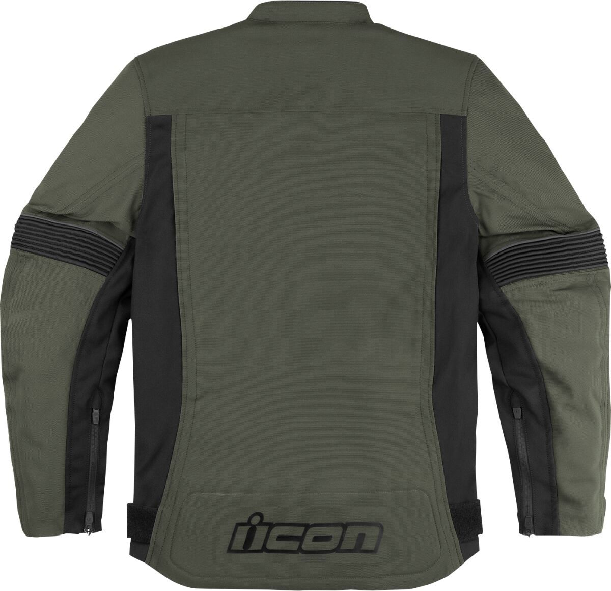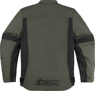 Slabtown™ JacketIncreased airflow through AirFly™ center front mesh panel, and zippered vents at the shoulders, cuffs, and back Removable insulated vest liner Designed for comfort in an aggressive riding stance with pre-curved arms and waist adjusters Back protector EN 1621-2 Level 1 450D nylon stretch chassis with 300D polyester internal reinforcements ICON® Sport Fit D30® removable viper back protector Elbow and shoulder LP1 impact protectors