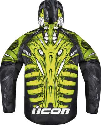 Airform Manik'r™ JacketAirform Manik'r™ graphic on front and back of jacket 420D Polyester chassis with 300D Polyester internal reinforcement PU-Coated shell material with DWR finish D30® removable Viper back protector; D3O® LP1 elbow and shoulder impact protectors Bungee cord style drawstring hood AirFly™ center front mesh panel with chest and back zippered vents Vented cuff zippers Back protector EN 1621-2 Level 1 Hood rolls up for easy storage Body: 94% Polyester & 6% Polyurethane
