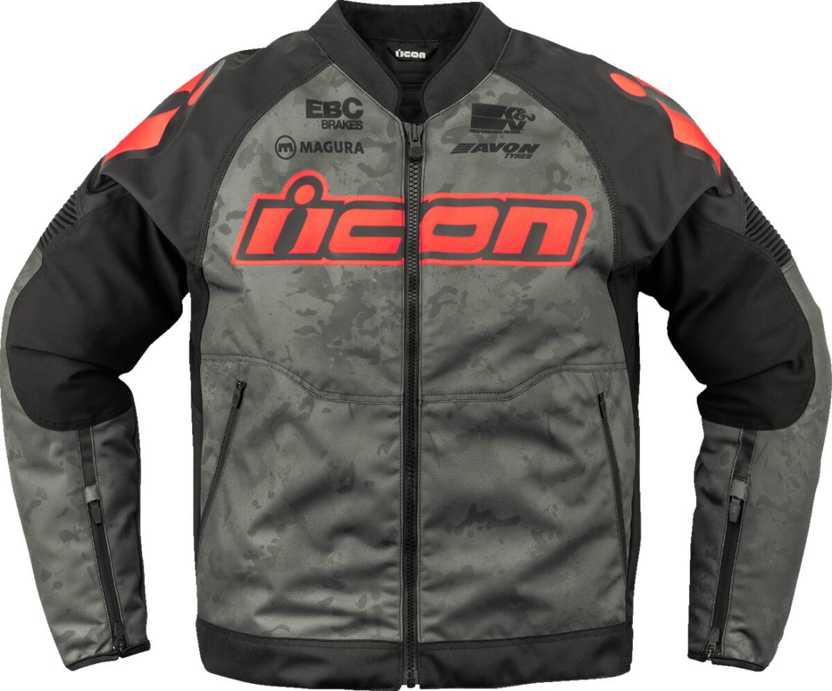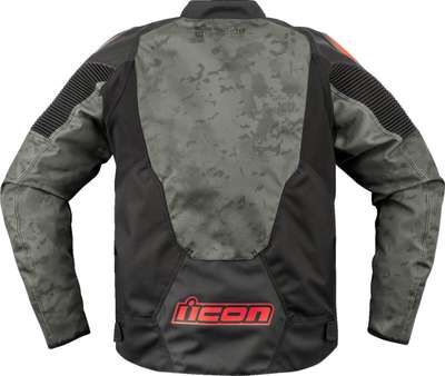 Overlord3™ Magnacross JacketSubtle camo print on the Overlord3™ Magnacross Jacket made of a durable 300D Polyester chassis Inside of jacket is reinforced with 300D polyester D3O® removable Viper back protector; T5 EVO elbow and shoulder impact protectors Pre-curved arms and waist adjusters AirFly™ center front mesh panel with integrated lower back exhaust vent Vented cuff zippers Removeable insulated vest liner Back protector EN 1621-2 Level 1 Jacket Shell: 98% Polyester & 2% Polyurethane. Inner/lining: 100% Polyester. Liner Body: 100% Polyester. Fill: 100% Polyethylene Fiber