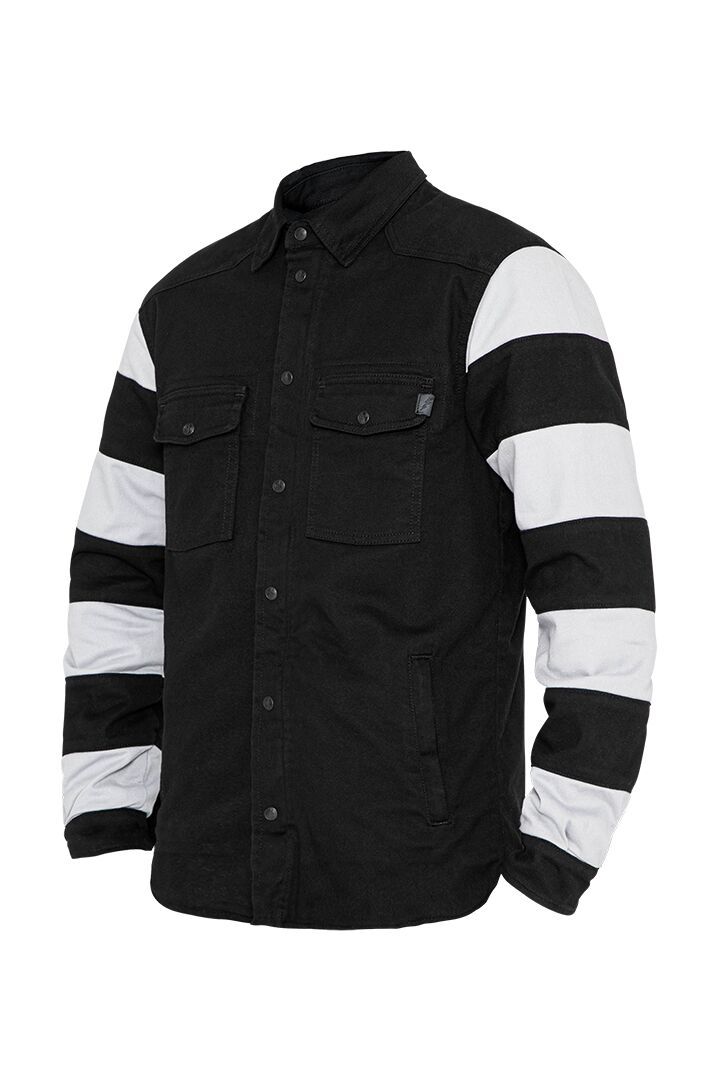 Prison Motoshirt JacketThe Motoshirt combines streetwear look with comfortable wearing experience and excellent protection. The XTM® fiber lining together with shoulder, elbow and back protectors make this possible. Two-layer design. Cotton-twill outer fabric Button-down collar. Multi stretch comfort for unrestricted freedom of movement. Long sleeves, straight shoulder – adjustable cuffs. Zippered (YKK zipper) side pockets and patch pocket on sleeve. Inside pockets on left and right side. Patch pockets with press studs. Two pockets on the front with zipper closure. Air vent ventilation system. Protection classification AAA. XTM® Protector-ready (multi-position system). Integrated shoulder, elbow and back protector pockets. Level 1 shoulder and elbow protectors included, upgradeable to Level 2 (part number: 27040752, sold separately). Shell 1: 60% Cotton & 40 % Polyester. Shell 2: 41% Polyester, 37% T400 ( (Elastomultiester Polyester) & 22% Cotton. EN 17092-2:2020 – AAA Class