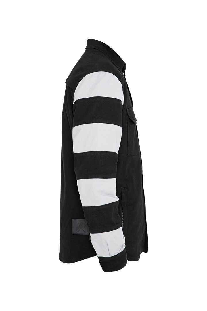 Prison Motoshirt JacketThe Motoshirt combines streetwear look with comfortable wearing experience and excellent protection. The XTM® fiber lining together with shoulder, elbow and back protectors make this possible. Two-layer design. Cotton-twill outer fabric Button-down collar. Multi stretch comfort for unrestricted freedom of movement. Long sleeves, straight shoulder – adjustable cuffs. Zippered (YKK zipper) side pockets and patch pocket on sleeve. Inside pockets on left and right side. Patch pockets with press studs. Two pockets on the front with zipper closure. Air vent ventilation system. Protection classification AAA. XTM® Protector-ready (multi-position system). Integrated shoulder, elbow and back protector pockets. Level 1 shoulder and elbow protectors included, upgradeable to Level 2 (part number: 27040752, sold separately). Shell 1: 60% Cotton & 40 % Polyester. Shell 2: 41% Polyester, 37% T400 ( (Elastomultiester Polyester) & 22% Cotton. EN 17092-2:2020 – AAA Class
