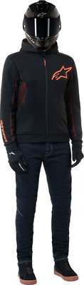 Chrome Air Sport HoodieOptimized for maximum airflow and cooling performance Offers excellent abrasion resistance thanks to the aramidic reinforcements on the shoulders and elbows Equipped with Nucleon Flex Plus protectors on the shoulders and elbows for superior impact protection Features an evolved fit designed for a modern athletic silhouette, while still maintaining enhanced levels of comfort and fit Optimized for comfort and freedom of movement without sacrificing style or performance Airflow mesh is strategically placed on the side panel and under the sleeves, allowing for optimal airflow Features a cordless hood with a snap collar button to tighten the hood securely around the neck while riding, providing added protection from the elements The back snap hood connection keeps the hood stable when not in use, preventing it from flapping in the wind during a ride Tech fleece main construction for the optimum blend of durability, comfort and light weight Dual hand pockets with zippered compartments for safe and secure storage of essentials One waterproof pocket for added protection against moisture and rain Tech-Air® Ready EN 17092-4:2020