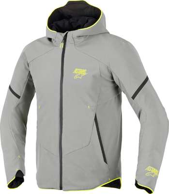 Aeroshell Waterproof JacketAeroshell WP Jacket is a crossover waterproof, sports softshell jacket engineered and optimized for style-focused sports naked, scooter and casual touring riders. Constructed from a stretch soft outer-shell for optimized adaptive fit and enhanced flexibility. Engineered 3D sport pattern with integrated overlap flaps for superior breathability and climate comfort. The hood features an open slot design preventing air catching while riding, integrated zipper garage for a sleek, modern aesthetic. Internal membrane is waterproof seamtaped with waterproof front zipper for effective wet weather performance. Ergonomic sleeve cuff and lower hem design for an optimized comfort fit. Adjustable welded cuff for a tailored and precise fit. Hidden zipped hand pockets for style and convenient secure storage of essentials. Incorporates hidden waist adjusters for a more precise custom fit. Elastic loop with snap button closure for a seamless, secure connection to Alpinestars pants. Nucleon Flex Plus Level 1 shoulder and elbow armor deliver proven impact protection in an ultra-flexible, vented, low profile design. Can be upgraded with Alpinestars PLASMA Full Chest Protector Hoop and Loop level 2, and Alpinestars regular and long back inserts, both available as optional accessory upgrades.