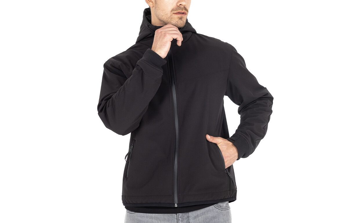 XTM® V3 Softshell Rip Stop HoodieConstruction consists of lightweight, high-performance Softshell Rip-Stop outer layer with Waterstop function, tested to a 10,000 mm water column Breathable, wind-resistant, stretch material for optimal comfort XTM-Fiber® for maximum abrasion protection and high flexibility Included protectors are Level 1 shoulder and elbow protectors which are upgradeable to Level 2 (part number: 27040752, sold separately). Integrated protector pockets for shoulders, elbows, and back Hood design has button closure at the top to prevent flapping in the wind YKK AquaGuard zipper and spacious pockets for everyday use John Doe logo EN 17092-3:2020 - AAA Class Outer shell: 92% Polyester (PES), 8% Spandex. Lining: 50% Aramid, 50% Polyester (PES)