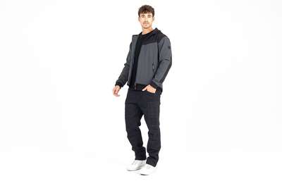 XTM® V3 Softshell Rip Stop HoodieConstruction consists of lightweight, high-performance Softshell Rip-Stop outer layer with Waterstop function, tested to a 10,000 mm water column Breathable, wind-resistant, stretch material for optimal comfort XTM-Fiber® for maximum abrasion protection and high flexibility Included protectors are Level 1 shoulder and elbow protectors which are upgradeable to Level 2 (part number: 27040752, sold separately). Integrated protector pockets for shoulders, elbows, and back Hood design has button closure at the top to prevent flapping in the wind YKK AquaGuard zipper and spacious pockets for everyday use John Doe logo EN 17092-3:2020 - AAA Class Outer shell: 92% Polyester (PES), 8% Spandex. Lining: 50% Aramid, 50% Polyester (PES)