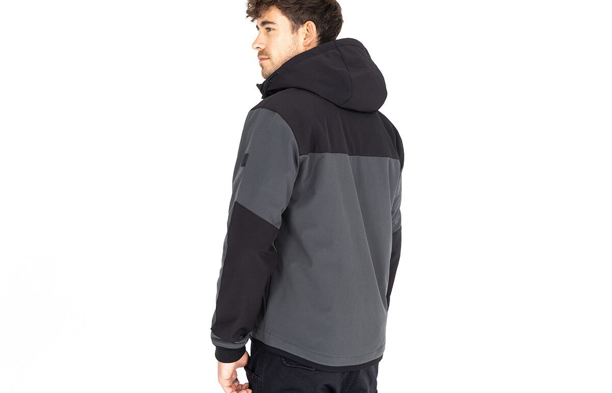 XTM® V3 Softshell Rip Stop HoodieConstruction consists of lightweight, high-performance Softshell Rip-Stop outer layer with Waterstop function, tested to a 10,000 mm water column Breathable, wind-resistant, stretch material for optimal comfort XTM-Fiber® for maximum abrasion protection and high flexibility Included protectors are Level 1 shoulder and elbow protectors which are upgradeable to Level 2 (part number: 27040752, sold separately). Integrated protector pockets for shoulders, elbows, and back Hood design has button closure at the top to prevent flapping in the wind YKK AquaGuard zipper and spacious pockets for everyday use John Doe logo EN 17092-3:2020 - AAA Class Outer shell: 92% Polyester (PES), 8% Spandex. Lining: 50% Aramid, 50% Polyester (PES)