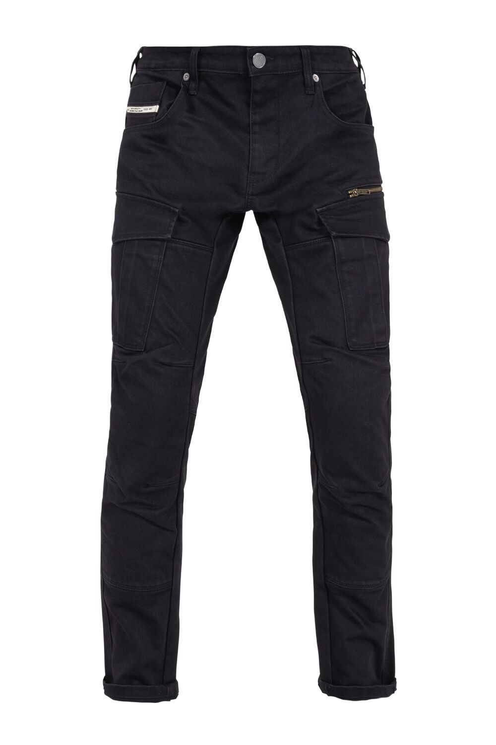 Defender Mono Riding PantsThe Defender motorcycle cargo pants are part of our monolayer collection and therefore also AAA certified. This means that the Defender does exactly what its name promises. Our specially developed XTM® fiber turns a pair of classic cargo pants into a pair of robust, abrasion-resistant and crash-proof motorcycle pants that remain extremely light thanks to a single layer of fabric. Our XTM® knee and hip protectors are not only removable, you can also adjust them vertically and horizontally inside the pants. Defender Monolayer has a Slim-Fit/close-fitting leg from knee to ankle. Cargo pockets – press stud and zipper. Water-repellent and breathable. Multistretch comfort. YKK zipper. Protection classification AAA. XTM® Protector-ready (multi-position system). Integrated height-adjustable knee protector pockets. Integrated hip protector pockets. Level 1 knee and hip protectors included, upgradeable to Level 2 (Optional knee protector Level 2: 27040752. Optional hip protector Level 2: 27030158. Both sold separately). 50% Cotton, 27% Lycra, 20% Nylon & 3% Polyester. EN 17092-2:2020 – AAA Class