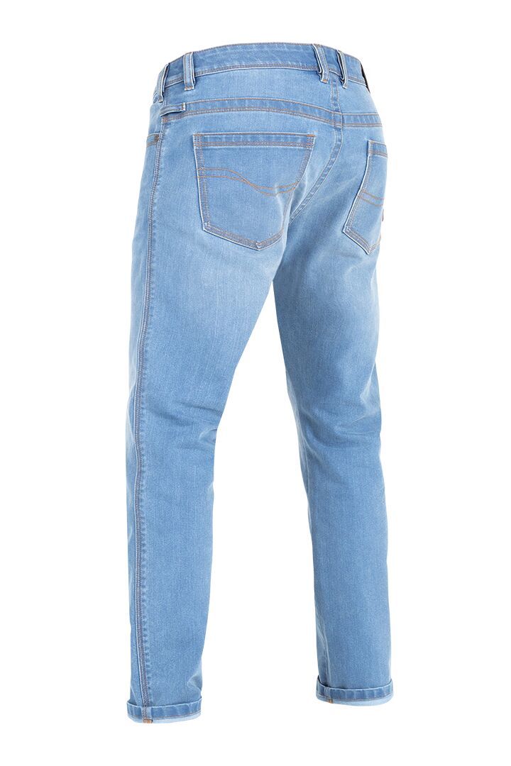Taylor Mono Riding PantsTaylor Monolayer gives you AAA certified jeans in monolayer fabric design, as the name suggests, for a cool and comfortable wearing experience on a hot day. The design is based on a special weaving process that combines denim fabric with XTM® fiber. In combination with the knee and hip protectors, this will protect you from anything you might encounter on the road. Taylor Monolayer has a straight-fit classical five-pocket design in an authentic denim look. Details such as eyelets to attach gloves or a pouch for small change or keys as well as stretch fabric give you an extremely comfortable wearing experience. The Taylor Monolayer has a Straight fit, standard leg – straight cut. Water-repellent and breathable. YKK zipper. XTM® Protector-ready (multi-position system). Integrated height-adjustable knee protector pockets. Integrated hip protector pockets. Level 1 knee and hip protectors included, upgradeable to Level 2 (Optional knee protector Level 2: 27040752. Optional hip protector Level 2: 27030158. Both sold separately). Shell 1: 50% Cotton, 30% Polyester & 20% Nylon. Shell 2: 50% Aramid & 50% Polyester. EN 17092-2:2020 – AAA Class