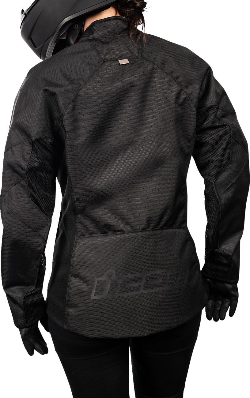 Women's Hooligan™ CE JacketICON® women's sport fit YKK® zippers Durable 300D polyester chassis with internal reinforcement Adjustable waist straps Back protector EN 1621-2 Level 1 D3O® Viper back impact protector; D3O® T5 EVO shoulder and elbow impact protectors Iron Weave™ mesh panels provide airflow for hot weather riding EN 17092-4:2020 – A Class