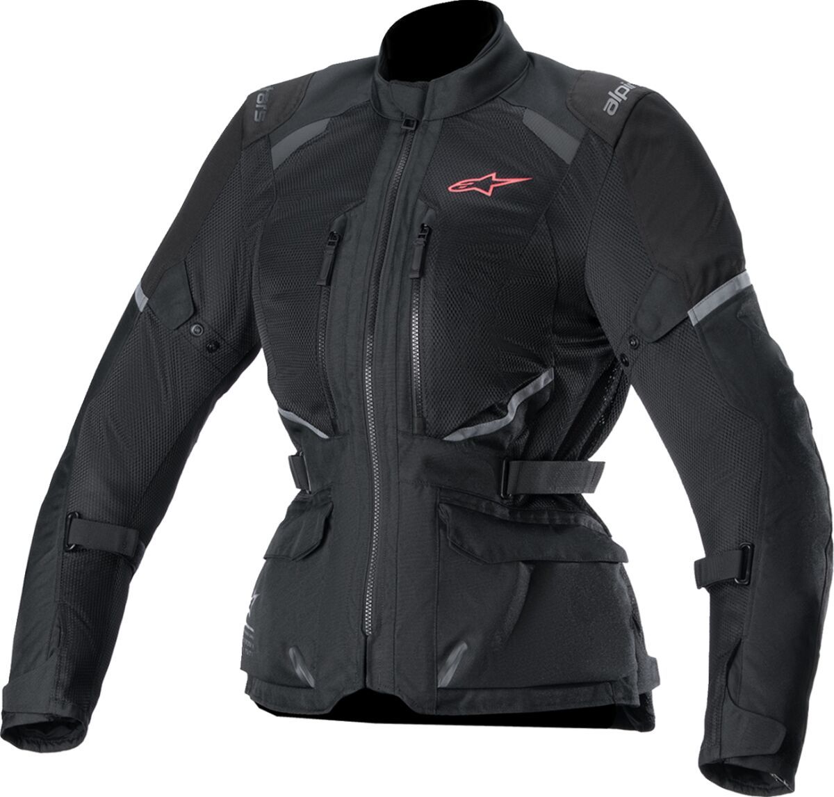 Stella Andes Air Drystar® JacketAnatomically optimized for a women’s specific fit, the Stella Andes Air Drystar® Jacket has been engineered to deliver optimal protection, comfort, ventilation and airflow in warm riding conditions, while still having the capability to be quickly and easily adapted to tackle cooler temperatures and wet weather, allowing it to be the ideal dual season touring jacket Road-orientated fit, with reduced length, a contoured bottom edge and pre-shaped arms for superior rider comfort and reduced fatigue 2D mesh on the chest, inner arms and back for optimized airflow and ventilation in warm riding conditions 100% waterproof and breathable, detachable Drystar® membrane can be worn over or under the jacket, allowing it to be easily and quickly adapted to best match the weather conditions Tech-Air® 5 and Tech-Air® 3 ready Ripstop reinforcements on shoulders, elbows and forearms for abrasion resistance Poly-fabric chassis for high levels of durability Storm collar for the prevention of water ingress Long mesh panels on the chest for enhanced airflow Volume adjuster on the biceps, with hook and loop volume adjusters on the forearms, hook and loop cuffs, and a hook and loop waist adjuster for an optimized fit Storage pouch on the lower back of jacket Fixed mesh liner with 3/4 zippered waist connector for quick and easy connection to Alpinestars pants Divided chest protector pocket and back protector pocket ready to accept chest and back armor, available as an optional accessory upgrade Waterproof compartment and internal pocket for safe and secure storage of valuables EN 17092-4:2020 – A Class 96% Polyester & 4% Polyamide. Inner/lining: 100 Polyester 96% Polyester & 4% Polyamide. 100% Polyester