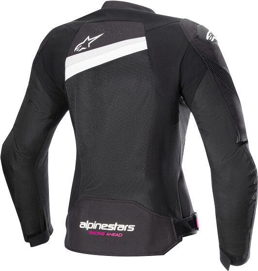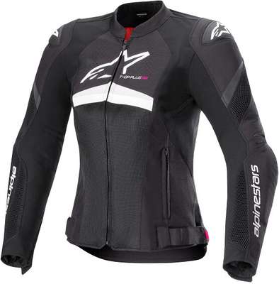 Stella T-GP Plus R v4 Air Jacket450D Poly-fabric construction for comfort, durability and abrasion resistance. Superior airflow thanks to extensive mesh panel on chest and back with a perforated panel on top of the back. Perforations on chest, back yoke and forearms strategically positioned for optimal ventilation. DSF Lite shoulder protectors for friction control and Nucleon Flex Plus shoulder and elbow armor for impact protection. Anatomically profiled for female fit with stretch zones under the arms and inner arms for sport fit. Hook and loop cuffs with zippered sleeve on the forearm for ease of use and ergonomics. Adjustable hook and loop waist adjustment. Mesh liner for comfort and fixed mesh liner with pockets to accommodate a back protector and split chest protector. Two external side pockets with zippers for practicality and internal chest pocket for storage of valuables. Tech-Air® 5 and Tech-Air® 3 Ready. Cut longer on the back for coverage while in the riding position. EN 17092-4:2020 – A Class 97% Polyester & 3% Polyurethane. 100% Polyester