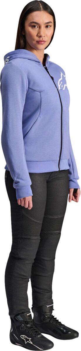 Stella Chrome v2 Sport HoodieOffers excellent abrasion resistance thanks to the aramidic reinforcements on the shoulders and elbows, in a casual package that looks great, on and off the bike Equipped with Nucleon Flex Plus protectors on the shoulders and elbows for superior impact protection Features an evolved fit designed for a modern athletic silhouette, while still maintaining enhanced levels of comfort and fit Optimized for comfort and freedom of movement without sacrificing style or performance Features a cordless hood with a snap collar button to tighten the hood securely around the neck while riding, providing added protection from the elements The back snap hood connection keeps the hood stable when not in use, preventing it from flapping in the wind during a ride Tech fleece main construction for the optimum blend of durability, comfort and light weight Dual hand pockets with zippered compartments for safe and secure storage of essentials One waterproof pocket for added protection against moisture and rain Tech-Air® Ready EN 17092-4:2020 99% Polyester & 1% Elasthane. 100% Polyester