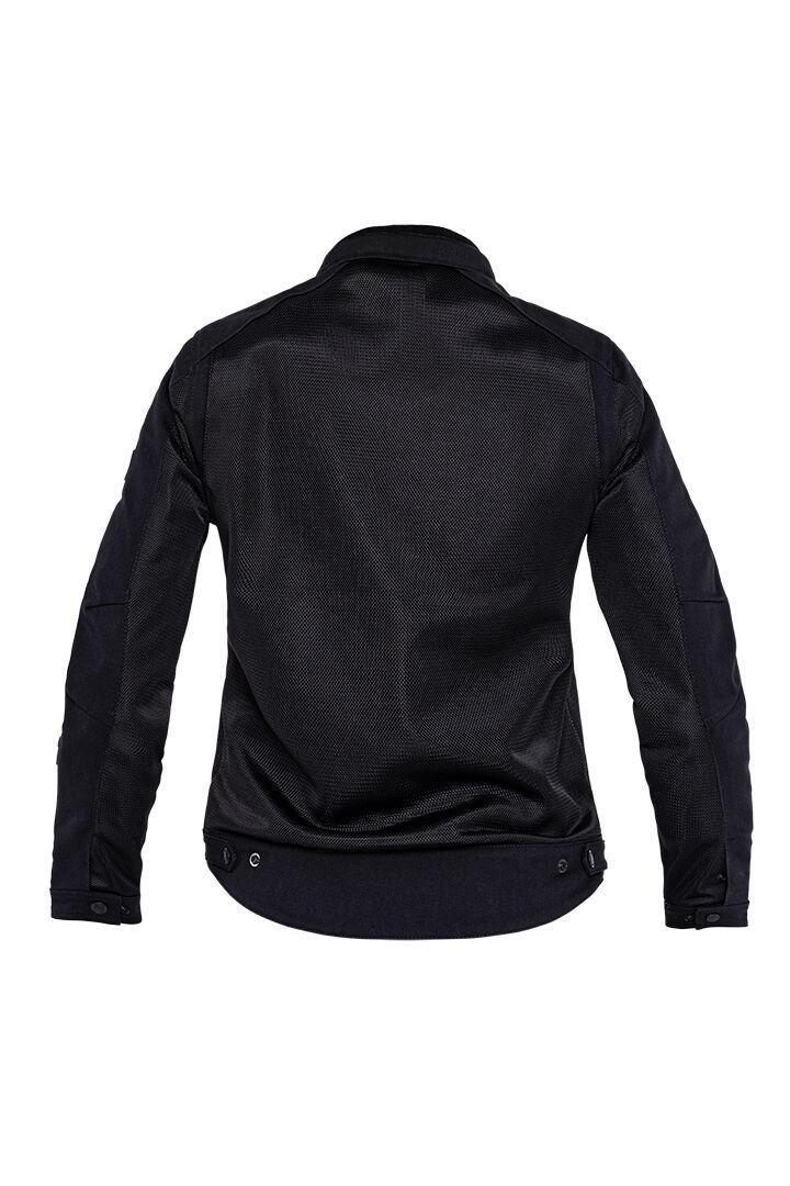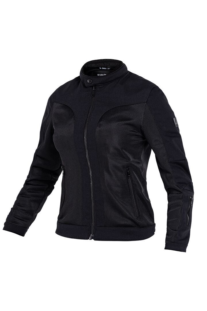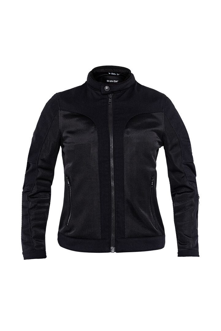 Women's Aero Mesh JacketThe John Doe Aero Mesh jacket is the ideal companion for hot summer days on the bike. The perforated construction of this motorcycle jacket offers optimum ventilation, ensuring a comfortable riding experience even in extreme temperatures. Whether in the city or on the highway, the Aero Mesh jacket keeps you cool and protected. For added comfort and versatility, we offer the optional "Aero Mesh Windblock Jacket" (sold separately, part number: 28207470). This thinner second layer can be worn inside the Aero Mesh Jacket and offers an additional wind-block function. With this combination, you have full control over your riding experience even on cooler days. Multi stretch comfort. Long sleeves, straight shoulder – adjustable cuffs. Round collar - reinforced with a YKK button. YKK zipper/YKK semi-automatic zipper. YKK flat buttons. Zippered side pockets on the front. Inner pocket on the left, incl. zipper. Protection classification AA. Integrated shoulder, elbow and back protector pockets. Level 1 shoulder and elbow protectors included, upgradeable to Level 2 (part number: 27040752, sold separately). Optional back protector Level 1 (part number: 27020317) and Level 2 (part number: 27020318)(both sold separately). EN 17092-3:2020 – AA Class
