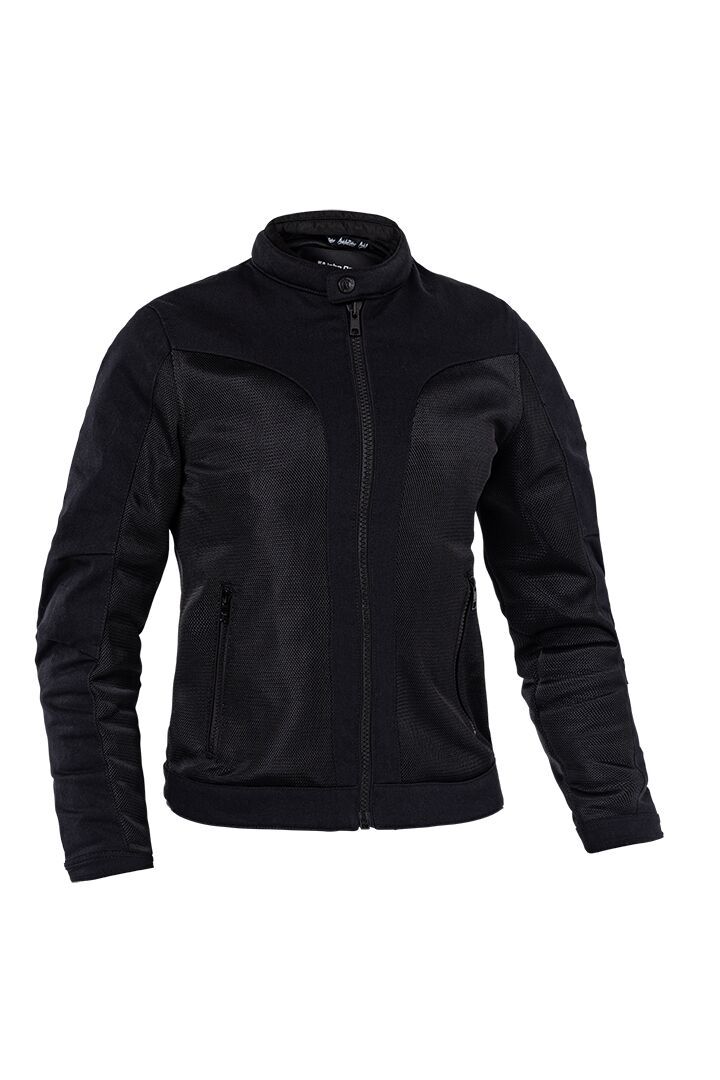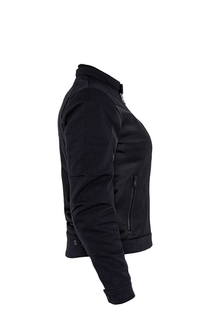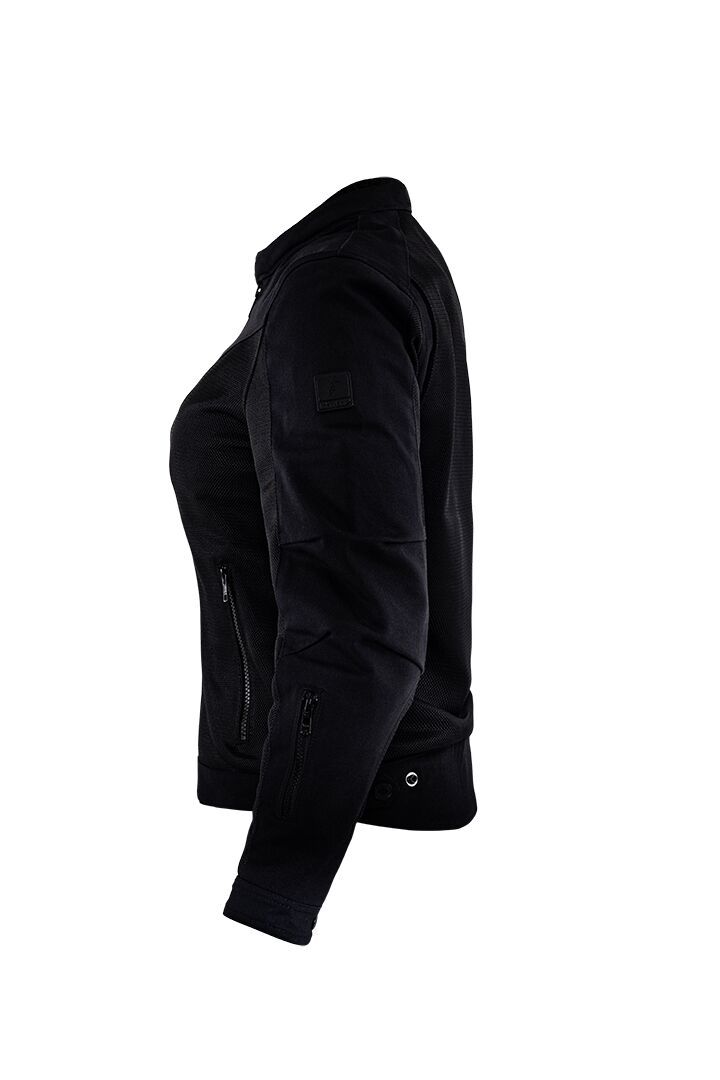 Women's Aero Mesh JacketThe John Doe Aero Mesh jacket is the ideal companion for hot summer days on the bike. The perforated construction of this motorcycle jacket offers optimum ventilation, ensuring a comfortable riding experience even in extreme temperatures. Whether in the city or on the highway, the Aero Mesh jacket keeps you cool and protected. For added comfort and versatility, we offer the optional "Aero Mesh Windblock Jacket" (sold separately, part number: 28207470). This thinner second layer can be worn inside the Aero Mesh Jacket and offers an additional wind-block function. With this combination, you have full control over your riding experience even on cooler days. Multi stretch comfort. Long sleeves, straight shoulder – adjustable cuffs. Round collar - reinforced with a YKK button. YKK zipper/YKK semi-automatic zipper. YKK flat buttons. Zippered side pockets on the front. Inner pocket on the left, incl. zipper. Protection classification AA. Integrated shoulder, elbow and back protector pockets. Level 1 shoulder and elbow protectors included, upgradeable to Level 2 (part number: 27040752, sold separately). Optional back protector Level 1 (part number: 27020317) and Level 2 (part number: 27020318)(both sold separately). EN 17092-3:2020 – AA Class