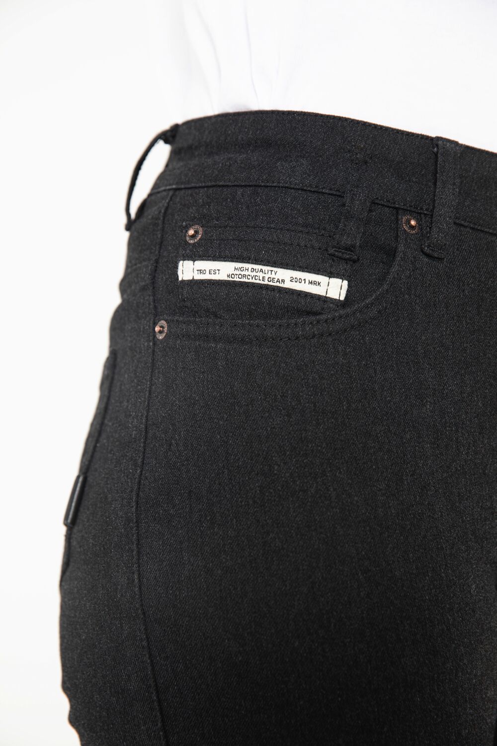 Women's Ruby Riding PantsRuby Monolayer women’s jeans benefit from extreme flexibility. This comes from a high-stretch blend that gives you a perfect fit with fantastic levels of comfort. You won't have to compromise on safety of course, as our high-cut five-pocket XTM® monolayer denim jeans are AA-certified and will protect you in every situation with protectors to the knee and hip. Five-pocket denim style. The Ruby Monolayer has a Slim-fit – high waist, slim leg cut. Water repellent and breathable. YKK zipper. Protection classification AA. XTM® Protector-ready (multi-position system). Integrated height-adjustable knee protector pockets. Integrated hip protector pockets. Level 1 knee and hip protectors included, upgradeable to Level 2 (Optional knee protector Level 2: 27040752. Optional hip protector Level 2: 27030158. Both sold separately). 42% Cotton, 18% Lyocell, 10% Nylon, 28% Polyester & 2% Elasthane. EN 17092-3:2020 – AA Class