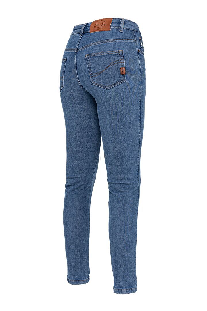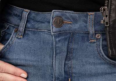 Women's Ruby Riding PantsRuby Monolayer women’s jeans benefit from extreme flexibility. This comes from a high-stretch blend that gives you a perfect fit with fantastic levels of comfort. You won't have to compromise on safety of course, as our high-cut five-pocket XTM® monolayer denim jeans are AA-certified and will protect you in every situation with protectors to the knee and hip. Five-pocket denim style. The Ruby Monolayer has a Slim-fit – high waist, slim leg cut. Water repellent and breathable. YKK zipper. Protection classification AA. XTM® Protector-ready (multi-position system). Integrated height-adjustable knee protector pockets. Integrated hip protector pockets. Level 1 knee and hip protectors included, upgradeable to Level 2 (Optional knee protector Level 2: 27040752. Optional hip protector Level 2: 27030158. Both sold separately). 42% Cotton, 18% Lyocell, 10% Nylon, 28% Polyester & 2% Elasthane. EN 17092-3:2020 – AA Class