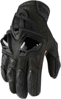 Hypersport™ Short GlovesAx® Laredo chassis is paired with goatskin palm overlays and diamond stitch accents located in areas of high wear from grips Palm sliders guard against high-velocity asphalt encounters Superior heat retaining materials with a focus on fit to provide ample range of motion, gives comfort on mild to colder riding days ICON® exclusive floating knuckle allows for maximum knuckle articulation and an out-seamed finger box and articulated fingers for all day comfort Perforated ventilation panels help keep hands cool and sweat free Floating knuckle with D3O® underlay and offers dexterity and abrasion resistance with TPU finger plates Full knuckle coverage from vented TPU/polycarbonate knuckle plates