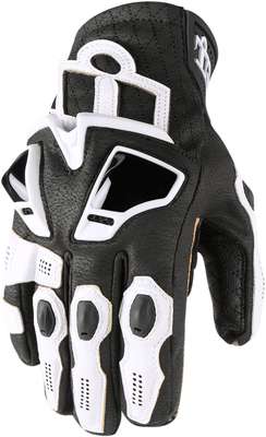 Hypersport™ Short GlovesAx® Laredo chassis is paired with goatskin palm overlays and diamond stitch accents located in areas of high wear from grips Palm sliders guard against high-velocity asphalt encounters Superior heat retaining materials with a focus on fit to provide ample range of motion, gives comfort on mild to colder riding days ICON® exclusive floating knuckle allows for maximum knuckle articulation and an out-seamed finger box and articulated fingers for all day comfort Perforated ventilation panels help keep hands cool and sweat free Floating knuckle with D3O® underlay and offers dexterity and abrasion resistance with TPU finger plates Full knuckle coverage from vented TPU/polycarbonate knuckle plates
