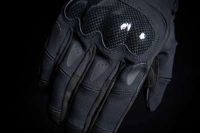 Stormhawk™ GlovesPerfect for three season motorcycle riding Lightweight glove features an abrasion-resistant polyester ripstop chassis exterior paired with a Hipora™ waterproof interior insert Low-profile glove features a rigid knuckle plate segmented fingers for flexibility and internal D3O® knuckle insert to provide backhand coverage Ax® Laredo engineered synthetic palm and palm overlays improve wear and grip properties Icon Level 3 Waterproofing Gloves EN 13594 : Level 1