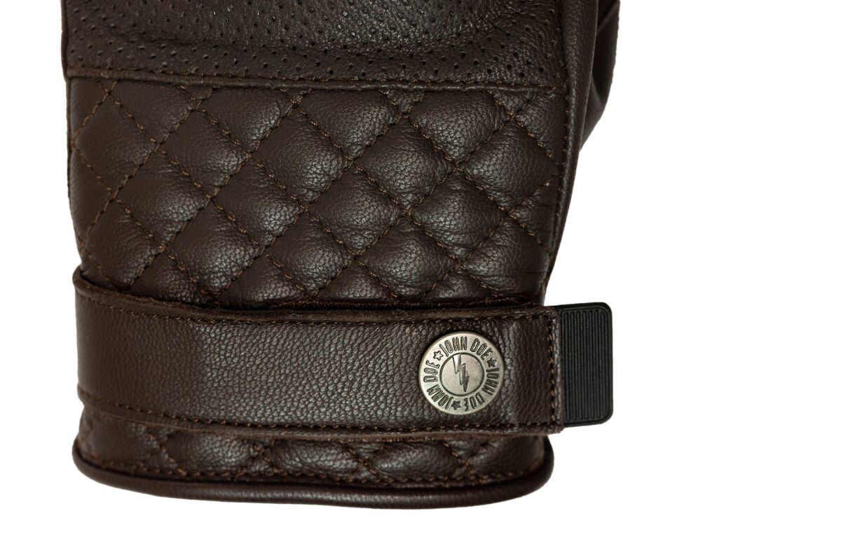 Tracker GlovesTracker is not only an extremely solid motorcycle glove, but the intricate details such as a touchscreen compatibility and wrist protectors make it extremely elegant. The goat leather is reinforced where you’d need it and perforated where you’d want it. The pre-curved fingers give you a secure grip on the handlebars on longer journeys, and the velcro strip on the wrist allows you to adjust the Tracker to an exact fit. Adjustable wrist strap closure. Elastic wrist. Touchscreen compatibility. Flex knuckles with padded knuckle armour. Reinforced padded palm. Perforated leather for breathability. John Doe brand logo. Shell 1:90% Goat Leather & 10% PVC protection. Shell 2: 100% Polyester.