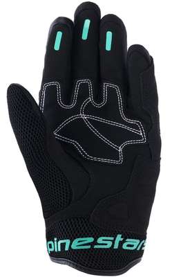 Stella Mogress Airflow GlovesA lightweight, short cuff glove optimized for warm weather riding, the Stella Mogress Airflow Glove blends functional, contemporary styling with superior protection. 2L Stretch membrane backhand constructions and stretch fourchettes for flexibility and rider comfort. Ergonomically engineered for a women's specific fit. Synthetic palm reinforcements, with further reinforcements on the side of the hand and the pinky finger for additional coverage in the landing zone. Laser perforations on the backhand, with 3D mesh inserts on the thumb, cuff and fingers for optimum warm weather climate control. Silicon grip inserts on first three fingers and touchscreen compatible fingertip on index and thumb. Short cuff design with hook and loop for a personalized, secure fit. Nucleon Plasma covered knuckle for superior impact absorption and energy dispersion. 48% Polyester, 41% Polyamide, 7% Polyurethane, 4% Elastane Inner/Lining: 100% Polyester