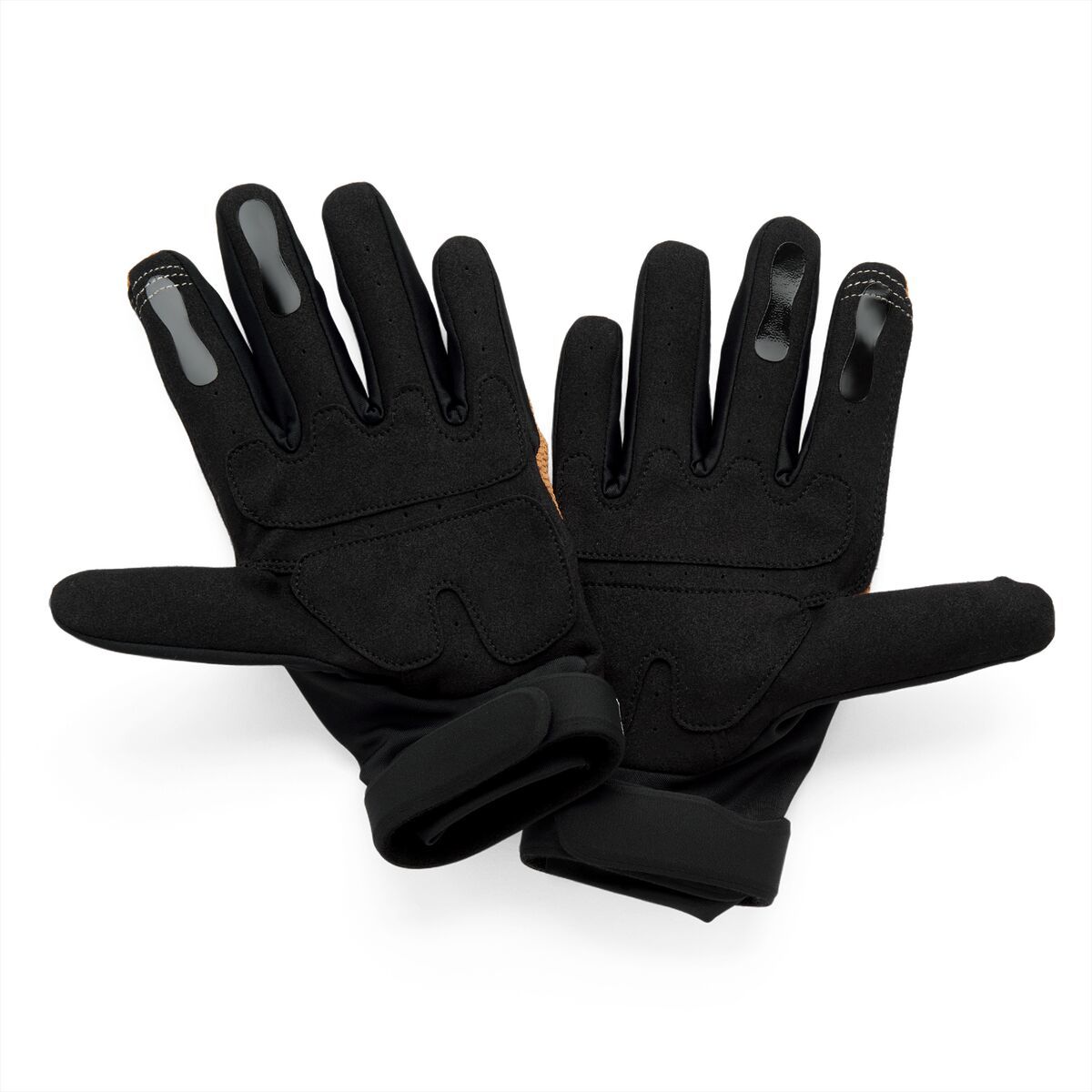 Langdale GlovesStretch finger gussets enhance mobility and wick away moisture Extended slip-on cuff with hook and loop band to secure opening to your preference Thumb overlay aids in reducing blisters Perforated dual-layer Clarino™ palm for improved comfort Smartshock® padded knuckles offers lightweight protection Finger TPRs to protect from trail debris and branches Silicone printed finger graphics improve lever traction Integrated tech thread keeps you connected with your digital devices
