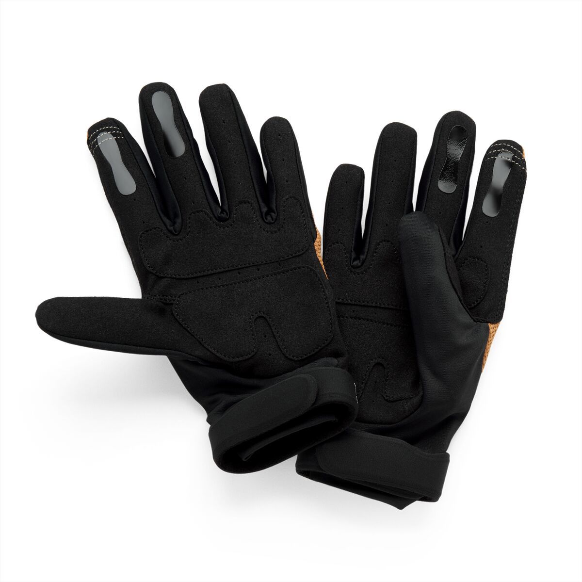 Langdale GlovesStretch finger gussets enhance mobility and wick away moisture Extended slip-on cuff with hook and loop band to secure opening to your preference Thumb overlay aids in reducing blisters Perforated dual-layer Clarino™ palm for improved comfort Smartshock® padded knuckles offers lightweight protection Finger TPRs to protect from trail debris and branches Silicone printed finger graphics improve lever traction Integrated tech thread keeps you connected with your digital devices