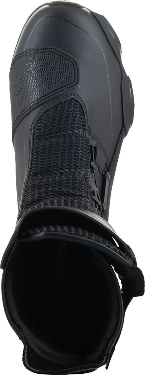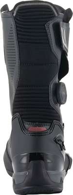 SP-X BOA BootsSP-X boots are a sleek sport boot designed to fit under tech riding pants and provide superior walking capability Optimized for the sport and sport touring rider, the SP-X are compact, mid-height boots with premium levels of protection and comfort on and off the bike The upper is constructed from a combination of Rideknit® material and knitted mesh, plus seamless thermo-welded parts The lower features a TPU heel counter, toe slider, and the Alpinestars Transversal Protection Frame (TPF) on the sole, allowing for high levels of protection against impacts and any bending or twisting Additionally, the sole also features an all-new design with an asymmetric back heel to facilitate the rider's natural stride and promote off-bike stability For protection, the SP-X has an integrated shin impact protector, dual-density ankle discs, plus TPU shift pad and toe slider reinforcement For comfort, the knitted areas on the front and back flex points offer great freedom of movement, while the PU midsole with integrated double cushioned heel compound and removable OrthoLite® insock, provide great walking comfort In and out is facilitated by a medial zip combined with the BOA speed lace system for compact and precise closure SP-X boots are perfect for those sport riders looking for coverage and protection but without the full race boot, over the pant look 36% Microfiber, 24% Polyurethane, 21% Polyester & 19% TPU. Inner/lining: 61% Polyester, 28% Synthetic & 11% Microfiber