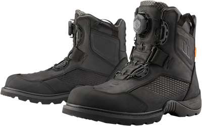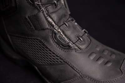 Stormhawk BootsPremium leather uppers feature a water-resistant finish Breathable eVent waterproof liners help keep feet dry Highly lugged oil/ slip-resistant rubber outsoles provide peak motorcycle performance Open-cell polyurethane insoles cushion feet BOA® Fit System for easy on/ off and a comfortable fit Dual D3O® inserts provide ankle coverage Reinforced rubber toe-caps, reflective heel accents and shifter interface nubs
