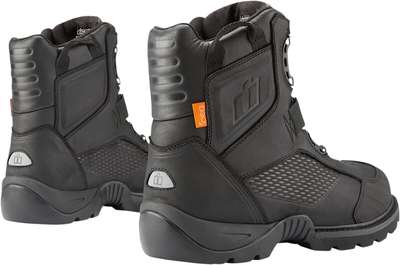 Stormhawk BootsPremium leather uppers feature a water-resistant finish Breathable eVent waterproof liners help keep feet dry Highly lugged oil/ slip-resistant rubber outsoles provide peak motorcycle performance Open-cell polyurethane insoles cushion feet BOA® Fit System for easy on/ off and a comfortable fit Dual D3O® inserts provide ankle coverage Reinforced rubber toe-caps, reflective heel accents and shifter interface nubs