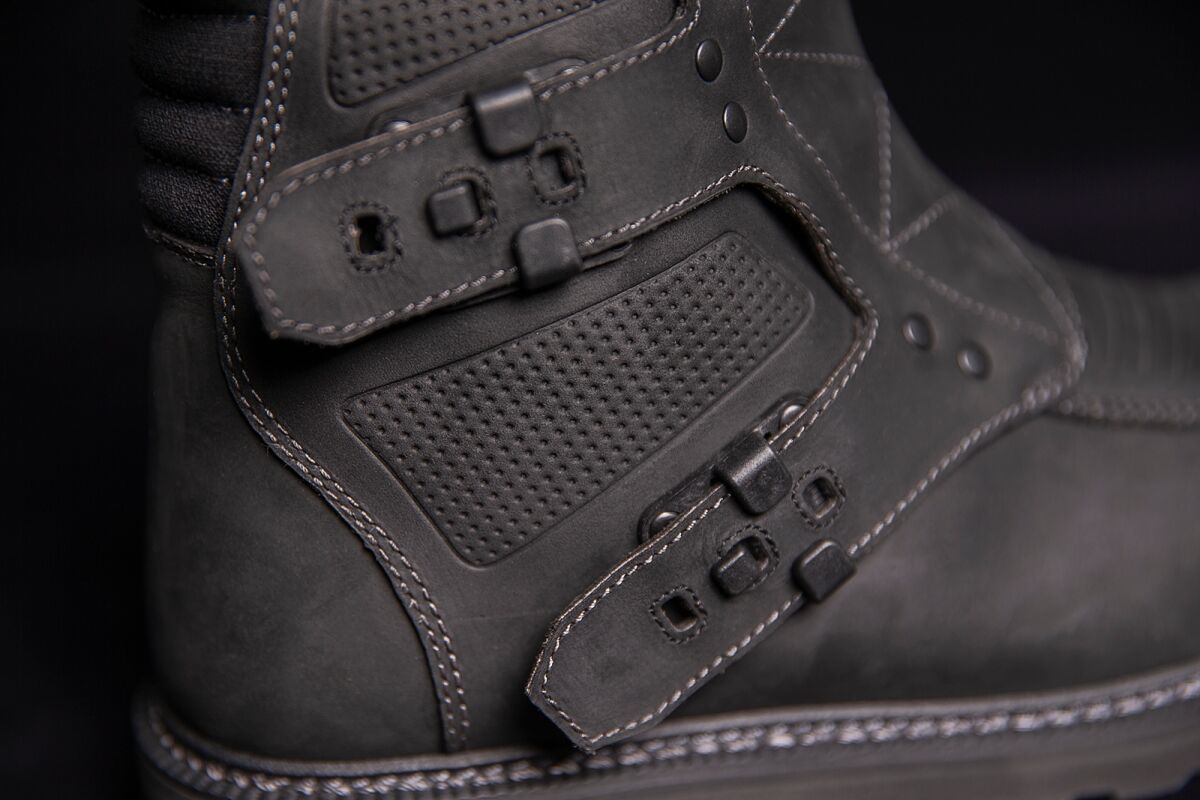 Elsinore 2™ BootsPremium leather uppers combined with oil/slip-resistant outsoles for rugged style Five-strap chassis allow for a comfortable fit Side zippers for easy on and off Tough reinforced shin plates and impact-resistant nylon buckles Internal D3O® ankle inserts provide functional coverage should your ride take a turn for the worse Hi-rebound EVA foam insoles provide all-day motorcycle riding comfort and support Reinforced shifter overlay