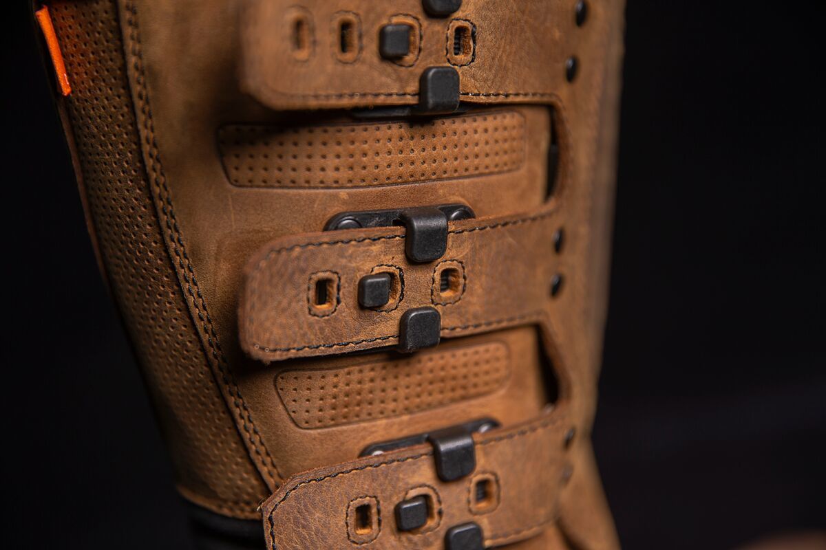 Elsinore 2™ BootsPremium leather uppers combined with oil/slip-resistant outsoles for rugged style Five-strap chassis allow for a comfortable fit Side zippers for easy on and off Tough reinforced shin plates and impact-resistant nylon buckles Internal D3O® ankle inserts provide functional coverage should your ride take a turn for the worse Hi-rebound EVA foam insoles provide all-day motorcycle riding comfort and support Reinforced shifter overlay