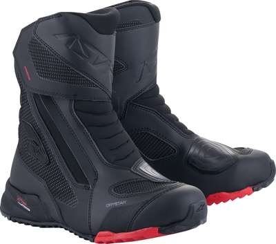 RT-7 Drystar® BootsRT-7 has a full Drystar® membrane for 100% guaranteed waterproof performance and breathability Technical modern upper constructed with an advanced blend of microfiber and synthetic high resistance textile laminated by a seamless PU for enhanced breathability Alpinestars integrated Transversal Protection Frame (TPF), protects the foot while delivering the necessary support on the footrest without compromising the front foot flexion for superior walking comfort Reinforced heel counter and toe box, with an additional shift pad extra later and reinforced shin area to protect against impacts The boot opening is managed by lateral zip mounted elasticated panel, covered by a hook and loop gusseted flap, to protect the zipper and keep free the boot flexion Dynamic design shift pad in 3D printed PU technology for effective upper foot protection 54% Microfiber, 23% Polyurethane, 16% Polyester, 5% EVA, 1% TPU & 1% TPR. Inner/lining: 100% Polyester