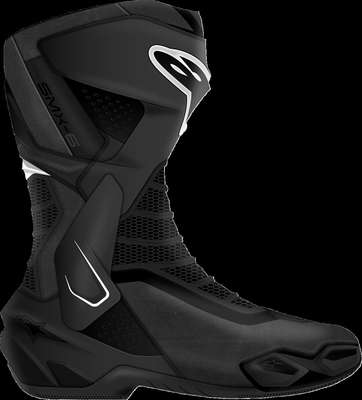 Stella SMX-6 V3 BootsAnatomically engineered for an optimized female specific fit, and packed with a host of innovative safety and protective features Stella SMX-6 v3 is the ultimate track and performance riding all-rounder, and incorporates race-derived technology and materials to give riders a crucial performance edge on the track, and street Female dedicated fit for optimum comfort Advanced microfiber upper construction for lightweight high performance protection against abrasion and superb levels of flexibility Front flex and back flexion zones are constructed with textile over-injected with a soft Thermoplastic Polyurethane (TPU) for enhanced impact abrasion while also promoting a natural forwards and backwards movement Alpinestars unique ankle brace protection system provides a bio-mechanical support and protection between lateral top calf, shin and ankle, for superior ankle articulation, while also limiting hyper-torsion, hyper-extension and hyper-flexion, as well as providing Achilles and ankle impact protection Alpinestars Lace-Lock System is constructed from an advanced polymer resin for a guaranteed quick, precise and secure closure Equipped with TPU shifter zone for superior protection on the lower medial side Strategically positioned, race-derived TPU shin plate protector delivers superior impact and abrasion resistance Dual density TPU ankle protectors are strategically positioned between the upper and padded lining to provide the strategic protection in key areas Replaceable, dual density TPU toe slider with screw-in assembly provides comprehensive protective coverage around the outer toe area while still being supremely flexible for walking comfort Replaceable heel slider and external side heel slider are strategically positioned for optimum shock dissipation and absorption, while promoting sliding in the event of an accident 37% TPU, 35% Microfiber, 11% Polyester, 8% Polyurethane, 8% TPR & 1% Elastic. Inner/lining: 82% Polyester & 18% Synthetic