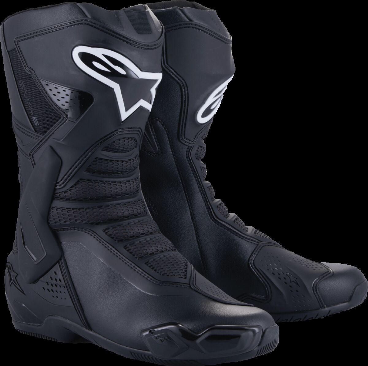 SMX-6 V3 BootsPacked with a host of innovative safety and protective features, SMX-6 V3 is the ultimate track and performance riding all-rounder, and incorporates race-derived technology and materials to give riders a crucial performance edge on the track, and the street Advanced microfiber upper construction for lightweight high performance protection against abrasion and superb levels of flexibility Front flex and back flexion zones are constructed with textile over-injected with a soft Thermoplastic Polyurethane (TPU) for enhanced impact abrasion while also promoting a natural forwards and backwards movement Alpinestars unique ankle brace protection system provides a bio-mechanical support and protection between the lateral top calf, the shin and ankle, for superior ankle articulation, while also limiting hyper-torsion, hyper-extension and hyper-flexion, as well as providing Achilles and ankle impact protection Alpinestars Lace-Lock System is constructed from an advanced polymer resin for a guaranteed quick, precise and secure closure Equipped with a TPU shifter zone for superior protection on the lower medial side Strategically positioned, race-derived TPU shin plate protector delivers superior impact and abrasion resistance Dual density TPU ankle protectors are strategically positioned between the upper and padded lining to provide the strategic protection in key areas Replaceable, dual density TPU toe slider with screw-in assembly provides comprehensive protective coverage around the outer toe area while still being supremely flexible for walking comfort Replaceable heel slider and external side heel slider are strategically positioned for optimum shock dissipation and absorption, while promoting sliding in the event of an accident 37% TPU, 35% Microfiber, 11% Polyester, 8% Polyurethane, 8% TPR & 1% Elastic. Inner/lining: 82% Polyester & 18% Synthetic