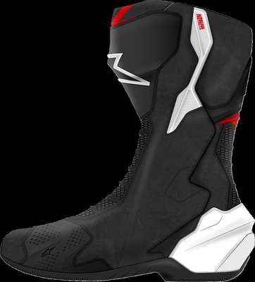 SMX-6 V3 BootsPacked with a host of innovative safety and protective features, SMX-6 V3 is the ultimate track and performance riding all-rounder, and incorporates race-derived technology and materials to give riders a crucial performance edge on the track, and the street Advanced microfiber upper construction for lightweight high performance protection against abrasion and superb levels of flexibility Front flex and back flexion zones are constructed with textile over-injected with a soft Thermoplastic Polyurethane (TPU) for enhanced impact abrasion while also promoting a natural forwards and backwards movement Alpinestars unique ankle brace protection system provides a bio-mechanical support and protection between the lateral top calf, the shin and ankle, for superior ankle articulation, while also limiting hyper-torsion, hyper-extension and hyper-flexion, as well as providing Achilles and ankle impact protection Alpinestars Lace-Lock System is constructed from an advanced polymer resin for a guaranteed quick, precise and secure closure Equipped with a TPU shifter zone for superior protection on the lower medial side Strategically positioned, race-derived TPU shin plate protector delivers superior impact and abrasion resistance Dual density TPU ankle protectors are strategically positioned between the upper and padded lining to provide the strategic protection in key areas Replaceable, dual density TPU toe slider with screw-in assembly provides comprehensive protective coverage around the outer toe area while still being supremely flexible for walking comfort Replaceable heel slider and external side heel slider are strategically positioned for optimum shock dissipation and absorption, while promoting sliding in the event of an accident 37% TPU, 35% Microfiber, 11% Polyester, 8% Polyurethane, 8% TPR & 1% Elastic. Inner/lining: 82% Polyester & 18% Synthetic