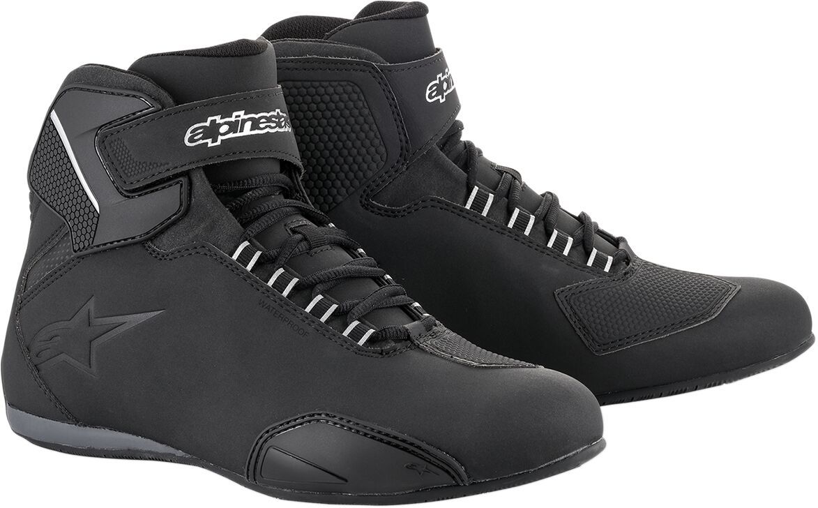 Sektor Waterproof ShoesThe upper is constructed from a superbly lightweight, durable and abrasion resistance microfiber Waterproof membrane lining for proven performance in difficult weather conditions Medial ankle protection for improved fit and a lighter weight Original speed lace system derived from Auto racing shoes for a personalized fit and feel Lateral ankle strap provides secure closure and fits within the upper ankle polymer protection panel to ensure a flush finish Thermoplastic Rubber (TPR) lateral ankle protector and slider for more protection and high abrasion resistance Flex areas on the heel and instep for an enhanced comfort while walking Small reflex detailing on heel and eyelet area makes the rider more visible to other road users Internal protective toe-box and heel counter are positioned under the microfiber outer chassis Extremely lightweight, specifically compounded, rubber sole provides textured grip, excellent absorption and features an integrated support shank for enhanced sole rigidity Replaceable anatomical EVA footbed with mesh lining on top 81% Microfiber, 9% Microfiber Suede, 8% Thermoplastic Rubber & 2% Velcro. Inner/lining: 100% Textile 81% Microfiber, 9% Microfiber Suede, 8% Thermoplastic Rubber & 2% Velcro. Inner/lining: 100% Textile
