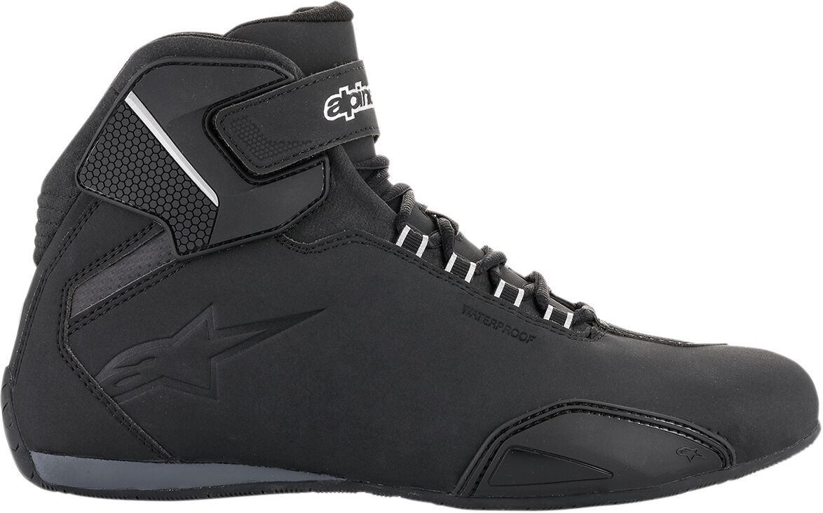 Sektor Waterproof ShoesThe upper is constructed from a superbly lightweight, durable and abrasion resistance microfiber Waterproof membrane lining for proven performance in difficult weather conditions Medial ankle protection for improved fit and a lighter weight Original speed lace system derived from Auto racing shoes for a personalized fit and feel Lateral ankle strap provides secure closure and fits within the upper ankle polymer protection panel to ensure a flush finish Thermoplastic Rubber (TPR) lateral ankle protector and slider for more protection and high abrasion resistance Flex areas on the heel and instep for an enhanced comfort while walking Small reflex detailing on heel and eyelet area makes the rider more visible to other road users Internal protective toe-box and heel counter are positioned under the microfiber outer chassis Extremely lightweight, specifically compounded, rubber sole provides textured grip, excellent absorption and features an integrated support shank for enhanced sole rigidity Replaceable anatomical EVA footbed with mesh lining on top 81% Microfiber, 9% Microfiber Suede, 8% Thermoplastic Rubber & 2% Velcro. Inner/lining: 100% Textile 81% Microfiber, 9% Microfiber Suede, 8% Thermoplastic Rubber & 2% Velcro. Inner/lining: 100% Textile